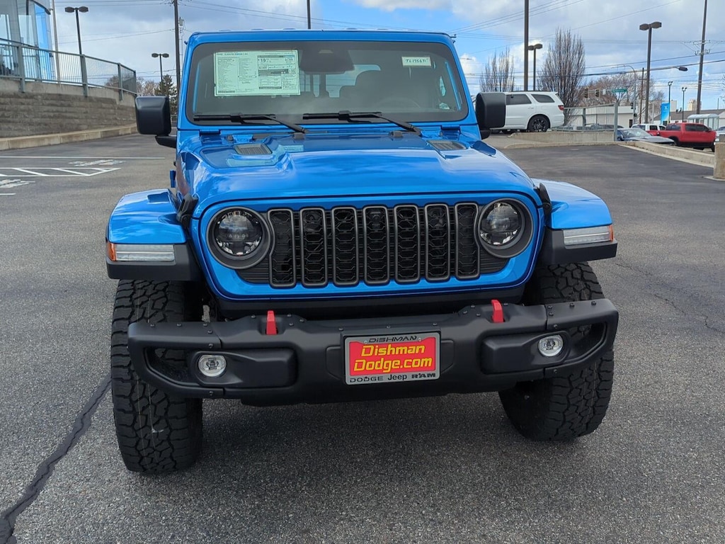 3.6L V6 24V VVT UPG I ENGINE W/ESS, 8-SPEED AUTOMATIC 850RE TRANSMISSION, QUICK ORDER PACKAGE 24Y RUBICON X, 17 X 7.5 MACHINED/PAINTED BLACK WHEELS, LT285/70R17C BSW A/T TIRES, HYDRO BLUE PEARLCOAT, BLACK, POWER ADJUST NAPPA LEATHER SEATS, STEEL POWER DOME HOOD PACKAGE, FRONT LICENSE PLATE BRACKET, MOPAR SPRAY IN BEDLINER, MOPAR ALL-WEATHER SLUSH MATS, MOPAR PLASTIC DOOR SILL GUARDS