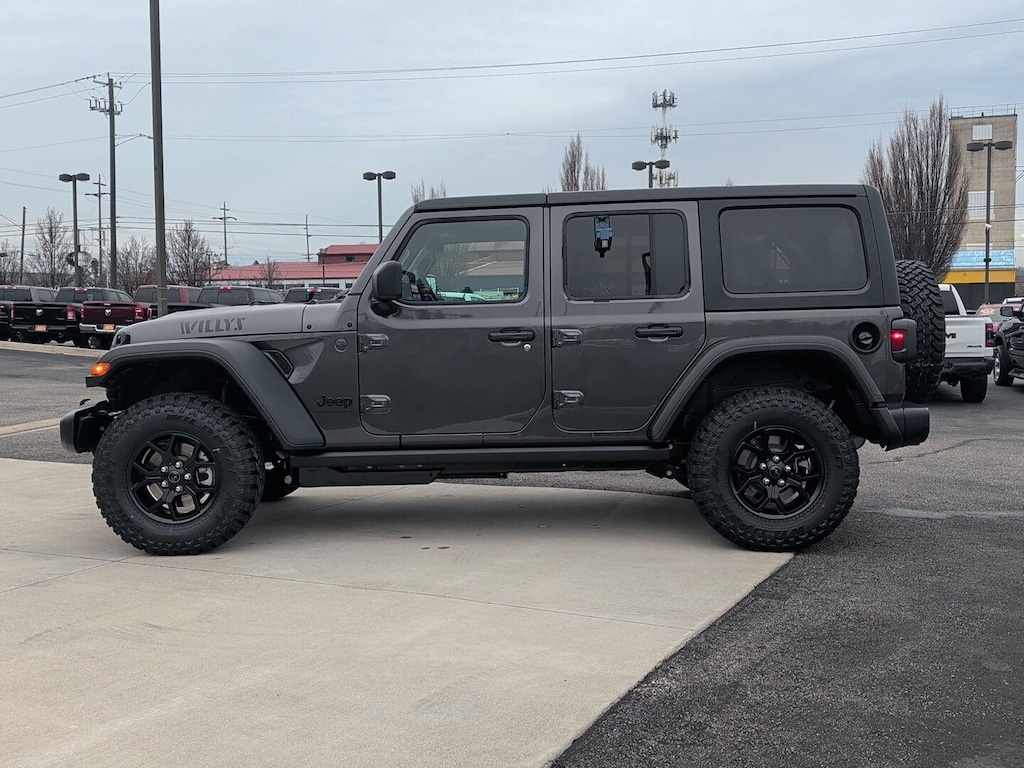 WILLY'S SUSPENSION, 3.6L V6 24V VVT UPG I ENGINE W/ESS, 8-SPEED AUTOMATIC 850RE TRANSMISSION, QUICK ORDER PACKAGE 24W WILLYS, 4.10 REAR AXLE RATIO, 17 X 7.5 PAINTED BLACK WHEELS, LT285/70R17C BSW MUD TERRAIN TIRES, GRANITE CRYSTAL METALLIC CLEARCOAT, BLACK, CLOTH LOW-BACK BUCKET SEATS, 5,675 LBS GVWR, TRAILER TOW & AUX SWITCH GROUP, CONVENIENCE GROUP, BLACK 3-PIECE HARD TOP, MOPAR PLASTIC DOOR SILL GUARDS