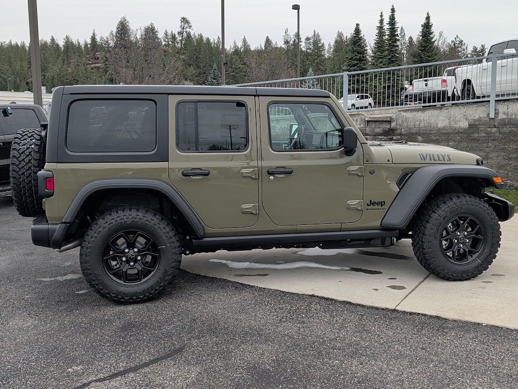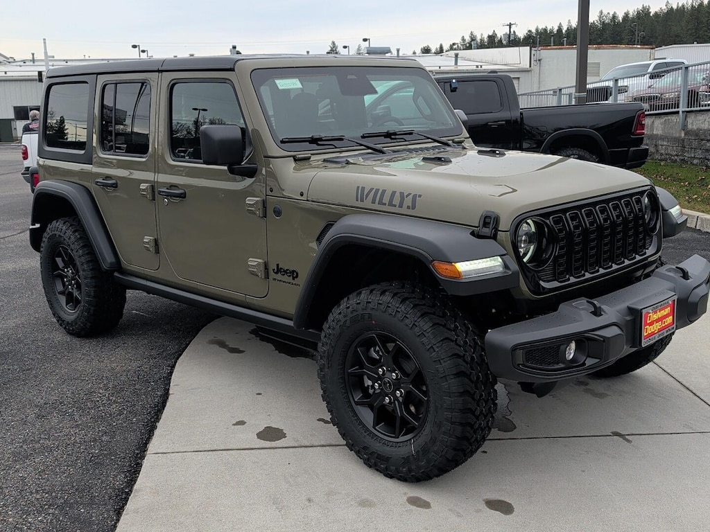 WILLY'S SUSPENSION, 3.6L V6 24V VVT UPG I ENGINE W/ESS, 8-SPEED AUTOMATIC 850RE TRANSMISSION, QUICK ORDER PACKAGE 24W WILLYS, 4.10 REAR AXLE RATIO, 17 X 7.5 PAINTED BLACK WHEELS, LT285/70R17C BSW MUD TERRAIN TIRES, 41, BLACK, CLOTH LOW-BACK BUCKET SEATS, 5,675 LBS GVWR, TRAILER TOW & AUX SWITCH GROUP, CONVENIENCE GROUP, BLACK 3-PIECE HARD TOP, MOPAR PLASTIC DOOR SILL GUARDS