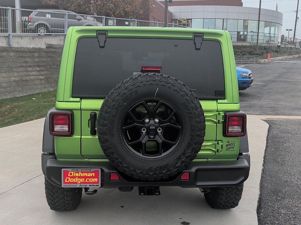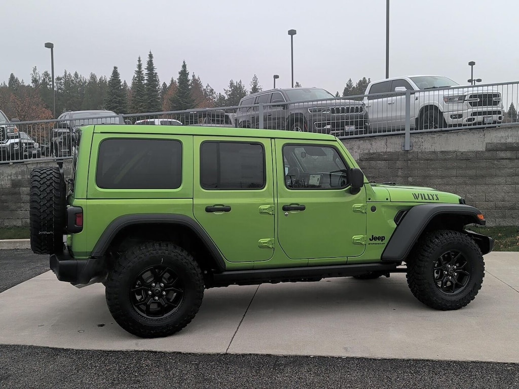 WILLY'S SUSPENSION, 3.6L V6 24V VVT UPG I ENGINE W/ESS, 8-SPEED AUTOMATIC 850RE TRANSMISSION, QUICK ORDER PACKAGE 24W WILLYS, 4.10 REAR AXLE RATIO, 17 X 7.5 PAINTED BLACK WHEELS, LT285/70R17C BSW MUD TERRAIN TIRES, MOJITO CLEARCOAT, BLACK, CLOTH LOW-BACK BUCKET SEATS, 5,675 LBS GVWR, TRAILER TOW & AUX SWITCH GROUP, CONVENIENCE GROUP, SKY 1-TOUCH POWER TOP